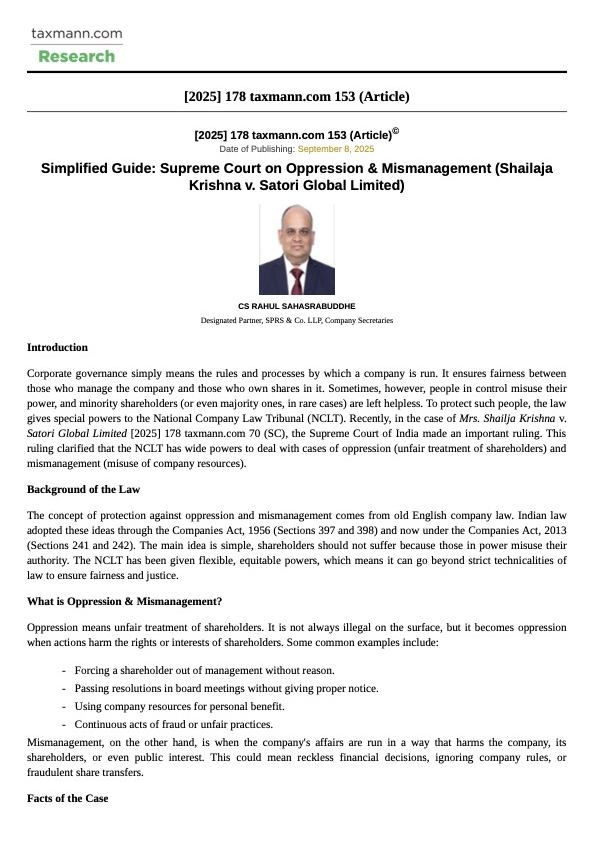 Corporate Misconduct and Shareholder Rights: An Analysis of Class Actions under Section 245 of the Companies Act, 2013